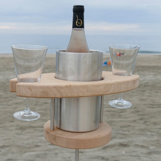 Der standesgemäße Weinglas-Halter mit Flaschenkühler für den Strand: Vino-Theke®